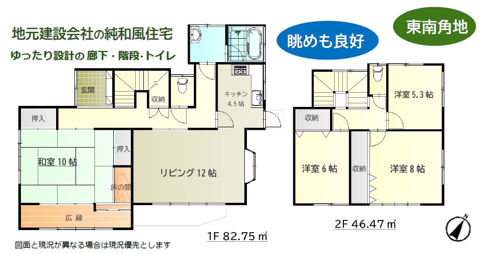 - 建物面積㎡ 1階82.75㎡ 2階46.47㎡ 延床面積129.22㎡㎡